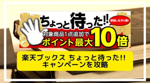 楽天ブックスで常時開催されいてる「ちょっと待った!!」のキャンペーン。いつも実施されているので気になる方もいるかと思います。 対象商品を1点追加することでポイント最大10倍というキャンペーンです。特定商品を一緒に購入をするとポイントが10倍になる…