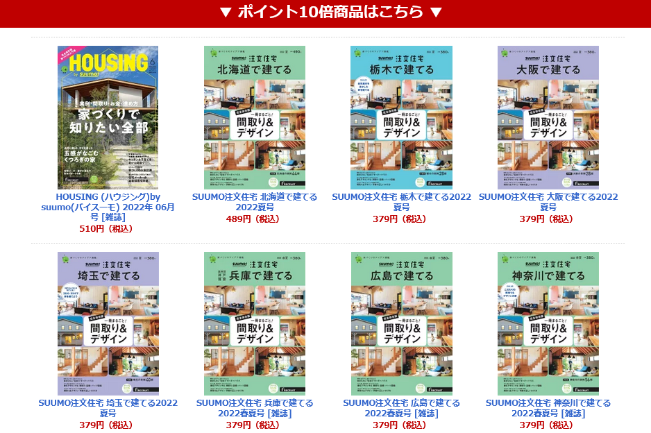 たとえば、上記の場合、379円の商品を買うのが一番効率的です。とにかく一番安いものを買いましょう。ほぼリクルートの住宅関係本です。